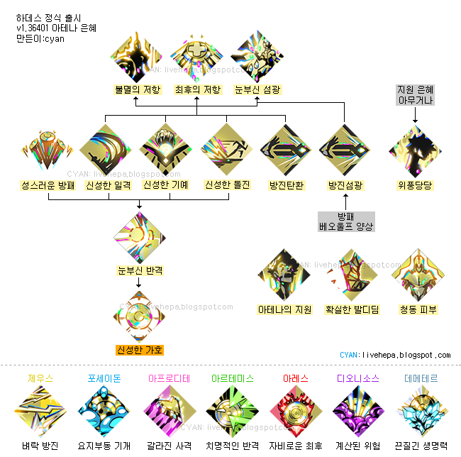 (+)2020/10/16 v1.36401 기준으로, 포세이돈, 아테나 은혜와 듀오 은혜 일부가 수정되었습니다.